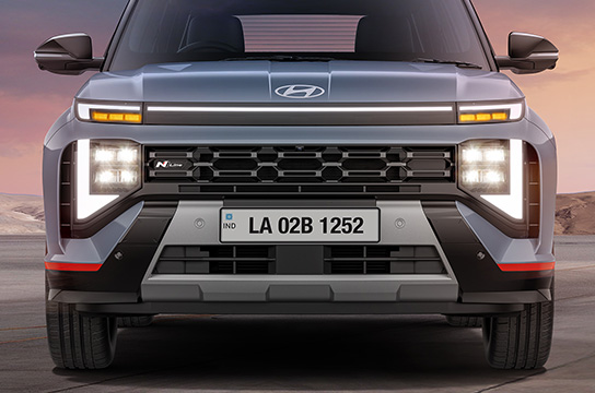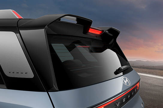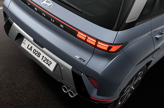 The all-new Hyundai VENUE N Line wears its attitude on the outside. Every element is crafted to turn motion into a statement, from the LED turn signal with sequential function that announce your every move with flair, to the bold N Line grille, skid plate and wing type spoiler that add a distinct edge. R17 (D=436.6 mm) diamond cut alloys with N emblem and red calipers showcase performance even at a standstill. The red accents on the roof rails underline its N Line identity. Every curve every cut speaks the language of pure sportiness.
